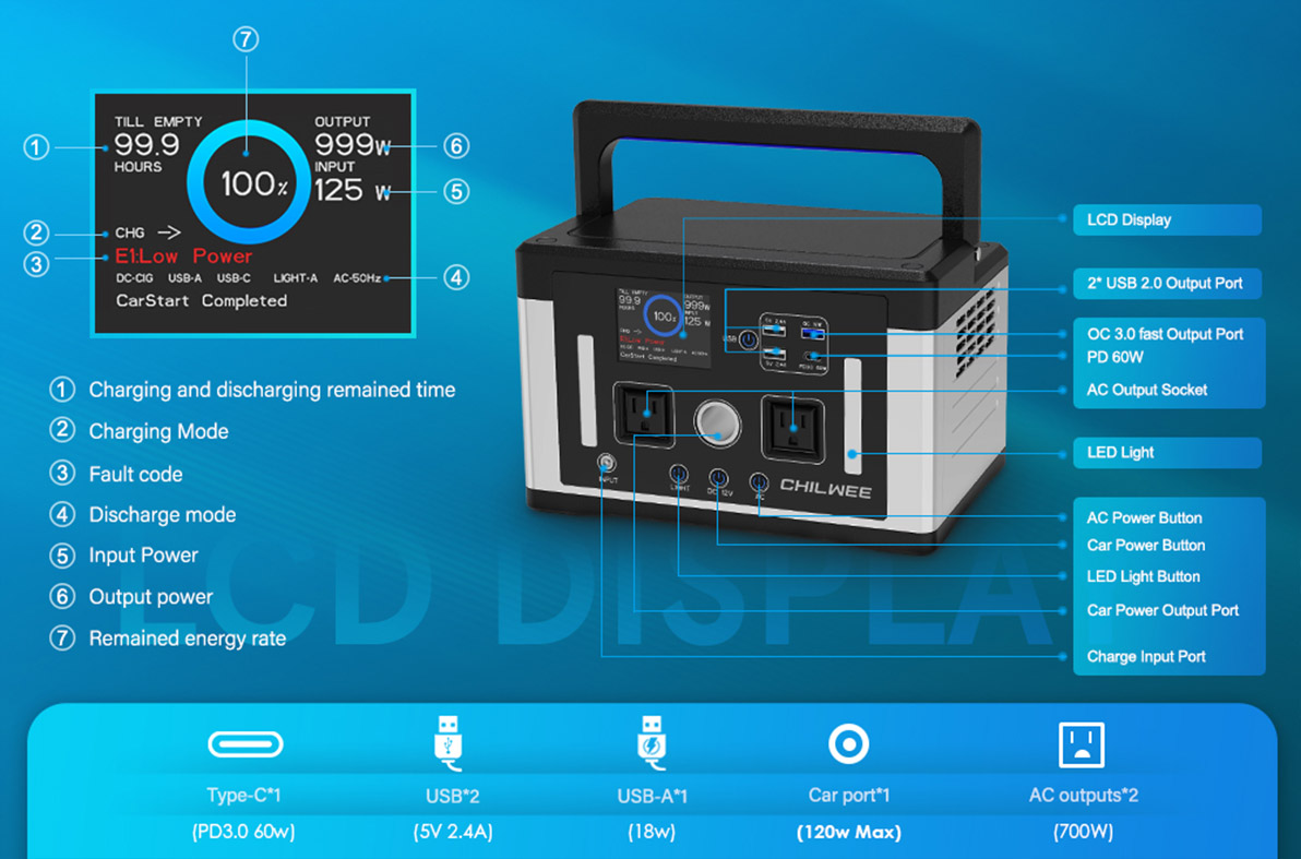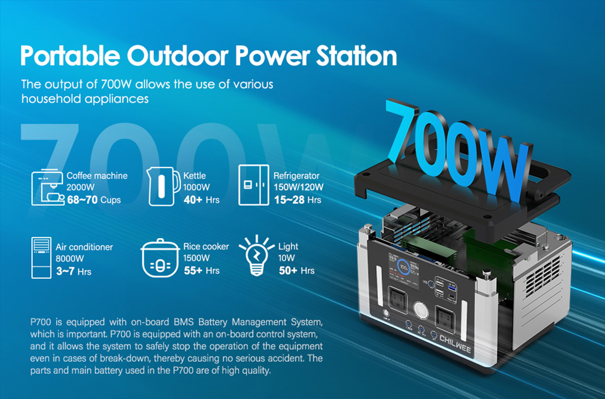 Ha barátait meghívja egy szabadtéri vacsorára, 700 W-os hordozható lítium akkumulátorra van szüksége az áramellátáshoz, a világításhoz, a grillezéshez stb.